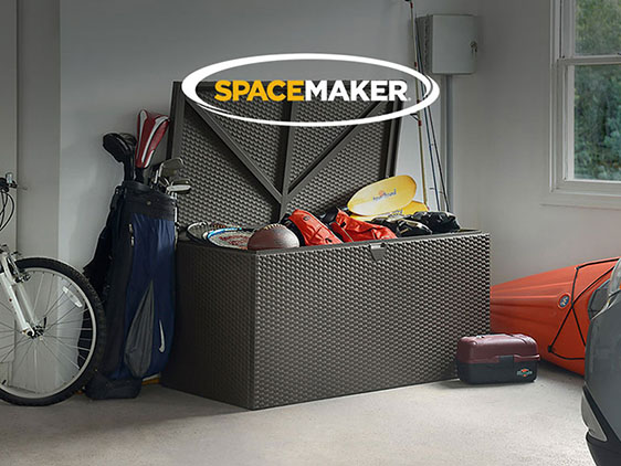 - SpaceMaker - A sub-brand within Arrow, Spacemaker specializes in deck boxes, gardens, and smaller outdoor storage sheds. Like Arrow, Spacemaker uses steel to craft their long-lasting products.